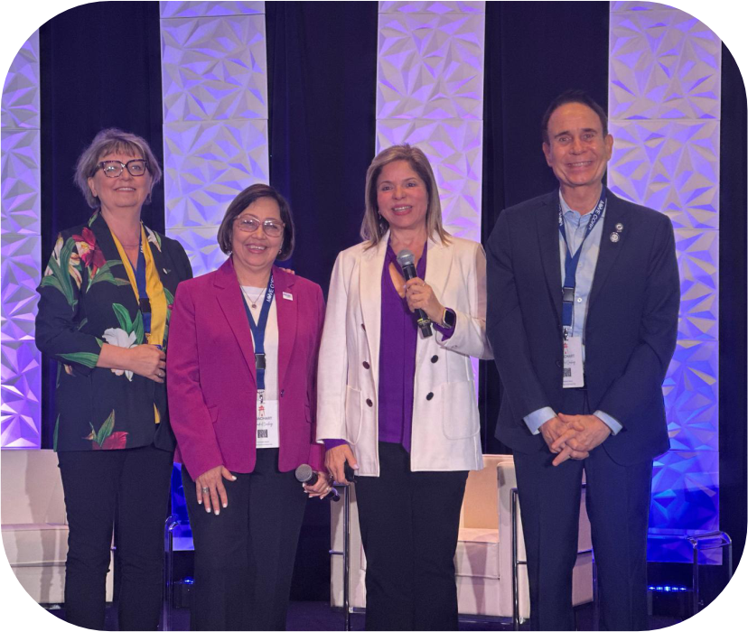 Seis años después, en la Convención de la ICF Puerto Rico, coincidimos nuevamente en el mismo orden: Magda Mook, CEO Global de la ICF, Ada Torres, Directora de Recursos Humanos de SIM, Coach Nydia Hernández y Jean-François Cousin, Presidente Global de la ICF 2019, un reencuentro que simboliza la evolución y madurez del Coaching en nuestra empresa.